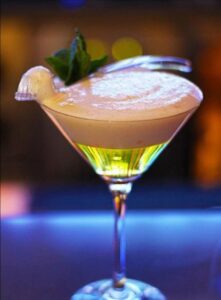 The Good Doctor is a smooth vodka martini with white cranberry and a light citrus note, finished with lime mint foam.