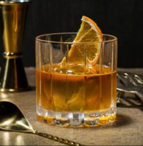 3 O’Clock is a bold bourbon cocktail with apple brandy, warm cinnamon, rich sugar, and bitters, finished with an orange peel aroma.