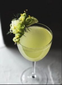 A vibrant mix of lime and basil with a hint of almond sweetness from orgeat. Crisp, fragrant, and elegantly balanced.