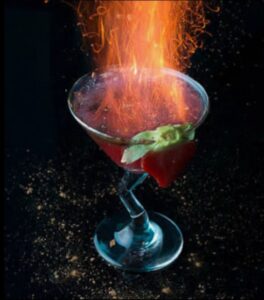 A bold, fiery blend of tequila, blood orange, and triple sec with a hint of grenadine. Bright citrus meets smooth sweetness, creating a dramatic cocktail with a vibrant, rebellious edge.